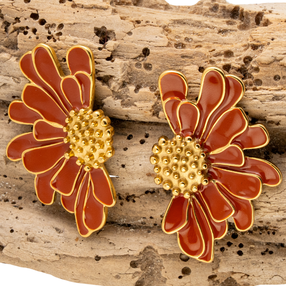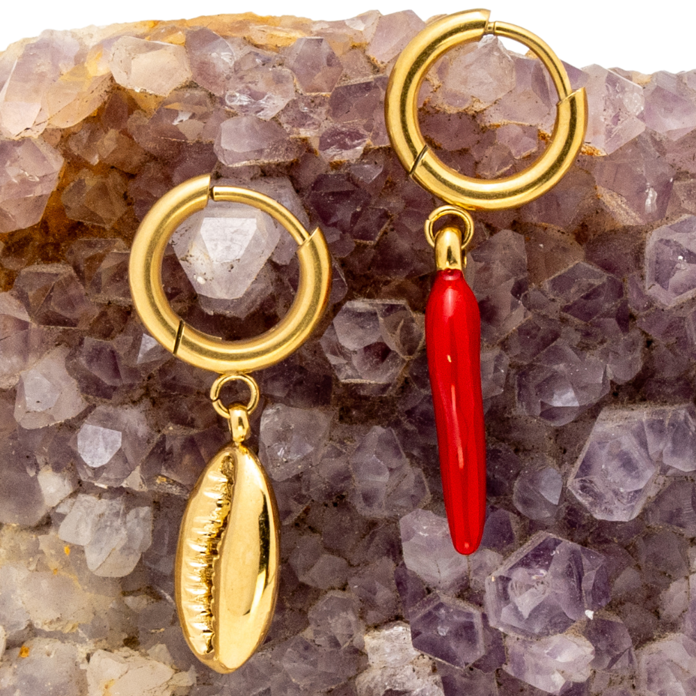 - Acero inoxidable, chapa de oro, esmaltado, perla swarovski.