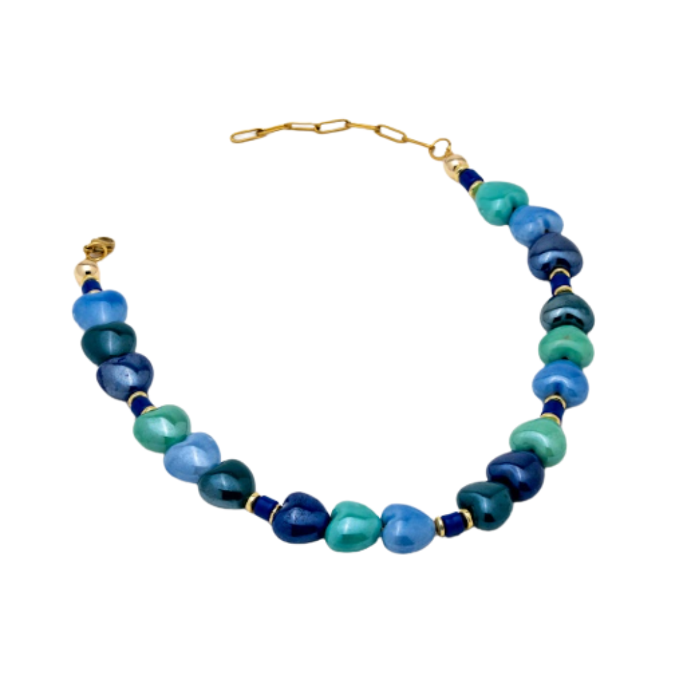 Cerámica, resina, chapa de oro, hematita, acero inoxidable, 40cm + extensible de 5cm.